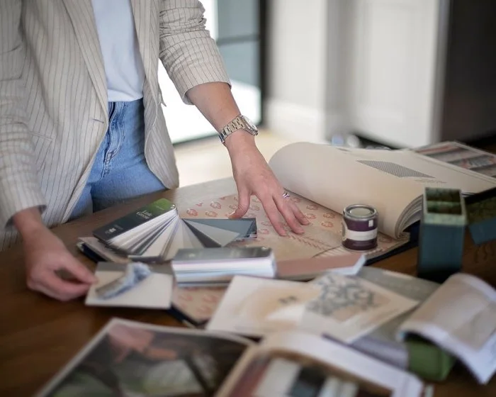 Now the fun begins! We draw from our extensive library of fabrics and wallpapers, along with our network of bespoke soft furnishings suppliers, upholsterers and carpenters, to collaboratively create a unique scheme for your show home.